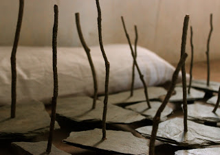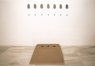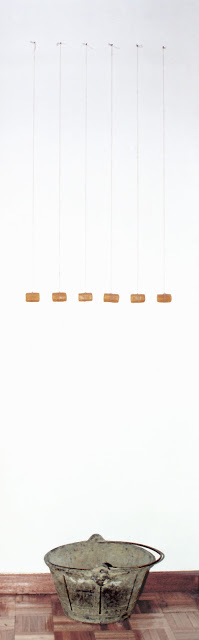 Mis hijos _ (tela, pino y pizarraproceso vital _ (mármolSi yo hubiera o hubiese _ (encina, pigmento, poliespán, látex y acrílico)Tatacum _ (papel fotográfico)El el doce _ (madera)El patio de mi casa _ (caldero, cuerda y cera virgen)Mi padre y su hermana _ (madera, tierra, papel y cristal)Siete de julio _ (pañuelos de tela y tierra arcillosa)